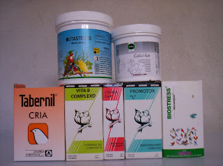 Dou aos meus pássaros algumas vitaminas, mas tento não os sobrecarregar com produtos..faço uma filtragem das boas experiências que alguns criadores amigos vão tento com as suas aves e procuro conjugar e adaptar ás minhas, consoante a necessidade. Chemivit e Avizoon são as marcas que recomendo. A papa de ovo uso da Pet Cup e King pela sua textura e composição e pela facilidade e á vontade com que todos os pássaros a comem, muito importante também é ter sempre grite e carvão vegetal ao dispor dos pássaros. As sementes são fornecidas pela Pet Cup, linha profissional.